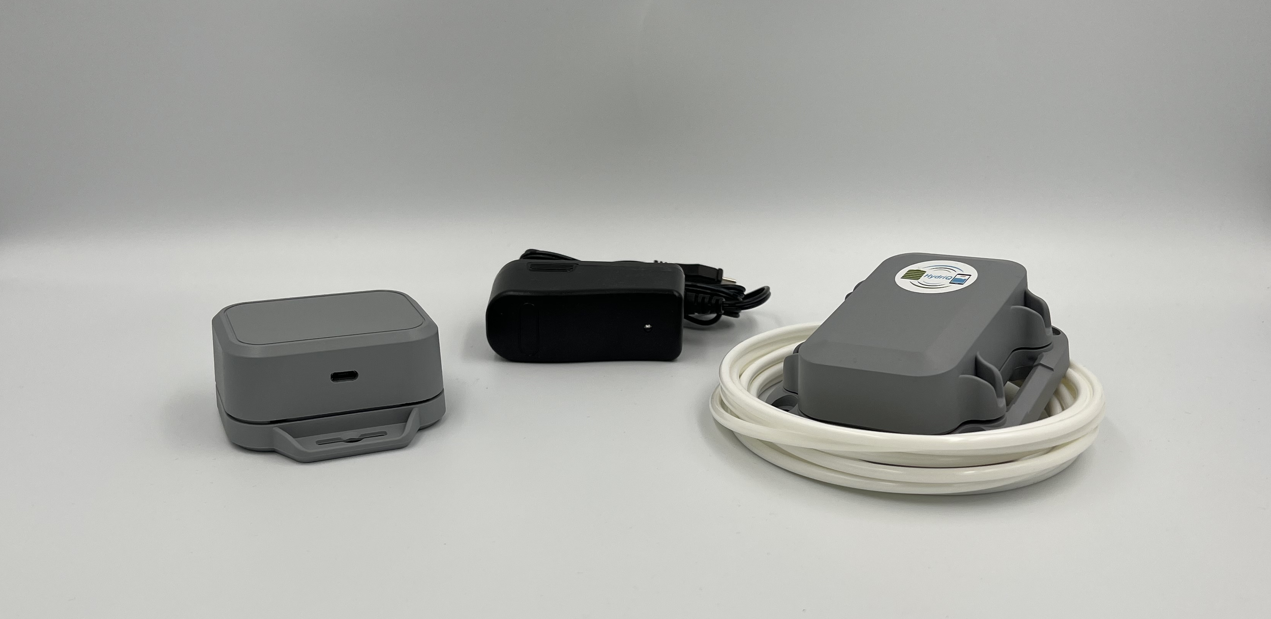 Package Includes: HydriQ Cloud Hub, 110VAC Power Adapter, Water Level Measurement Endpoint, Landing Pod, 110VAC Power Adapter, Stainless Steel Mounting Screws, 2 AA Batteries, Installation Guide, Quick Start Reference.